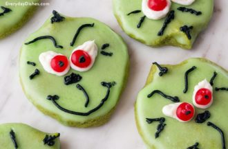 Cute, fun, and festive cookies shaped like Rudolph — great for kids’ baking!