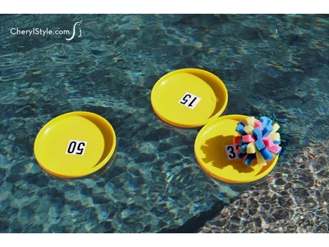 - Place the Frisbees in the pool, have the kids dunk their sponges and take turns trying to toss them into the Frisbees. When the winner reaches a mutually-agreed-upon score, the game is over.