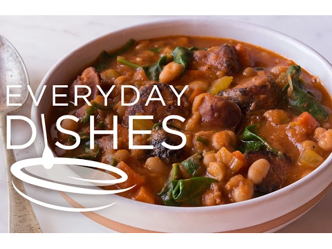 Although chicken or turkey sausage is sometimes hard to find at your local supermarket, it is well worth the hunt to make this spinach and white bean soup.