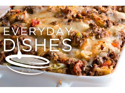 - To assemble, double layer cabbage, meat sauce and cheese in greased 9" x 13" pan. Sprinkle with red pepper flakes if desired. Bake 20 minutes or until golden brown.